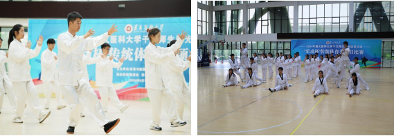 6月16日,上午综合赛事传统体育类比赛在北门体育馆进行,24式简化太极拳、太极扇、跆拳道比赛同场竞技,太极拳的刚柔相济与太极扇飘逸潇洒交相辉映,跆拳道酣畅淋漓的表演,则将比赛推上了高潮。