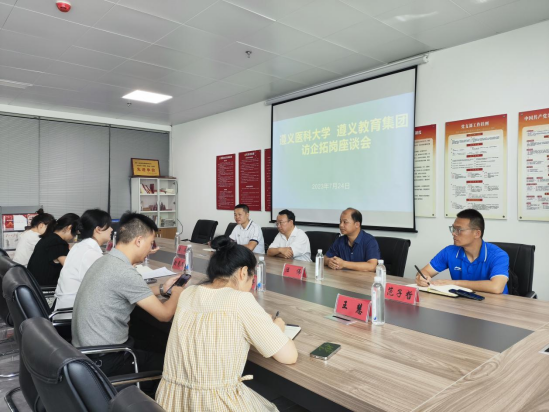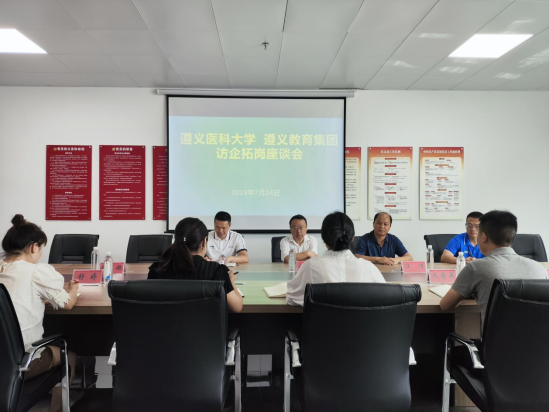 7月24日,公司党委委员、副董事长赵继锋,体育与健康公司党委副书记、经理汪伟,体育与健康公司党委副书记唐溢等一行,前往遵义教育集团和遵义新赛点体育文化有限公司开展访企拓岗促就业工作。