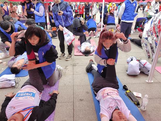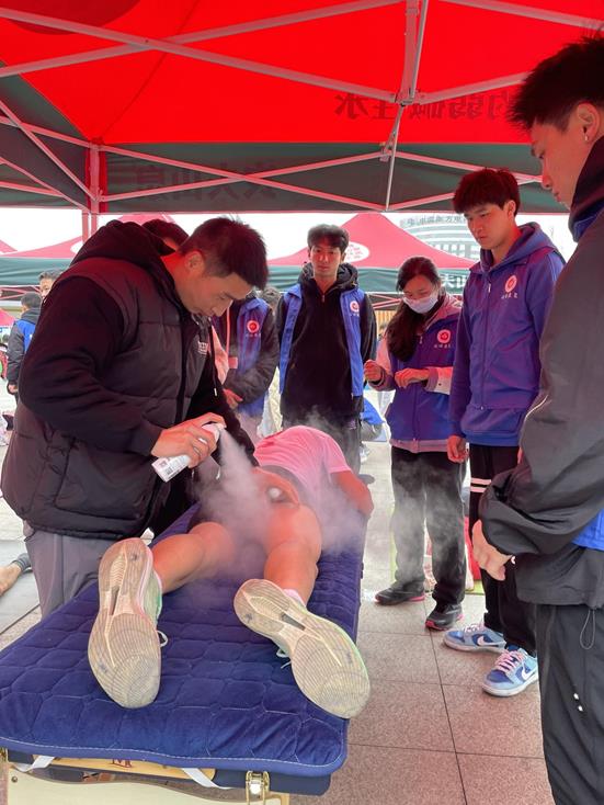 bevictor伟德官网接到任务后,选派运动康复教研室主任张婕、副主任王兰及涂世利、黄茜蓝等4位老师带队,选拔50名运动康复专业员工组队开展现场赛后康复,此次赛后服务主要为运动员提供拉伸放松服务,同时针对部分运动员出现的拉伤、扭伤等急性运动损伤进行现场处理。本次活动共计开展了近1000人次的赛后康复和运动损伤处理,专业的运动康复技术得到运动员的一致好评,在圆满完成本次大赛的康复保障任务的同时也有效传播了科学的运动防护和赛后康复理念。