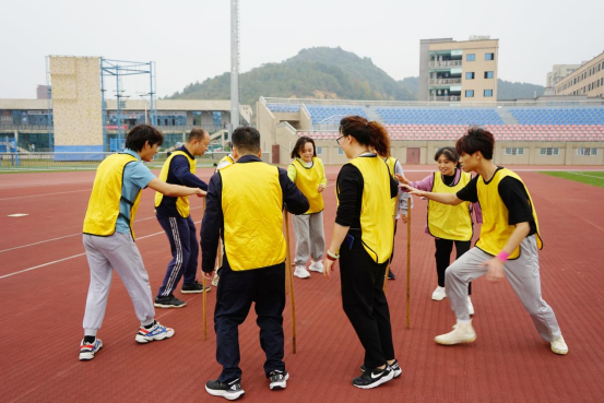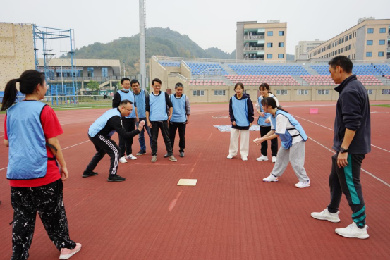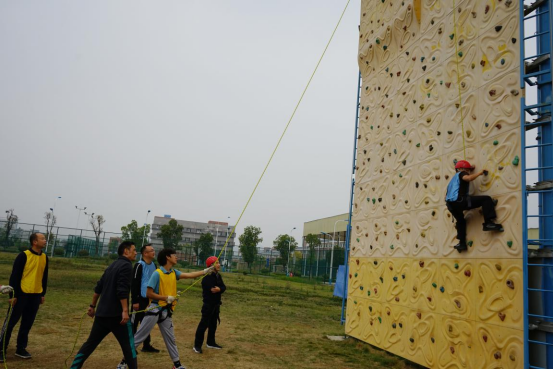 集中学习结束后,在bevictor伟德官网张迎春老师的带领下,全体党员在南区运动场参与同心鼓、围板凳、高山流水及攀岩等体育拓展活动。
