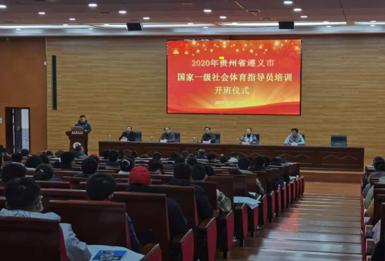 本次培训为期5天,有来自遵义市各县、市、区的55名体育指导工作者和遵义师范公司、遵义体校及公司bevictor伟德官网共200余名员工参加本次培训。开班仪式于2020年11月27日上午9:00在公司道德讲堂隆重举行,遵义市文体旅游局党组成员、副局长韦祎,群体科科长谭朝江和公司bevictor伟德官网领导共同出席,体育与健康公司党委书记汪爱平教授致欢迎辞,向学员全面介绍了公司的总体情况以及体育公司的发展,充分肯定9年来国家一级社会体育指导员的培训工作,并对本次培训提出了具体的要求。
