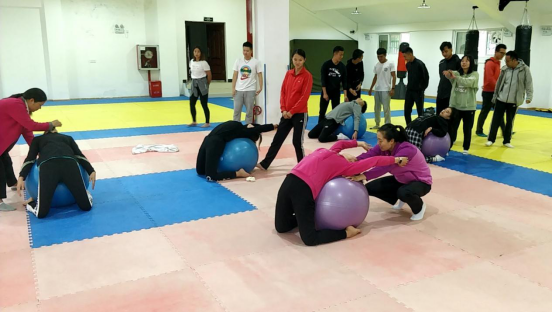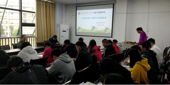 为继续规范《大学体育》课堂教学,提升教师教学技能,推进体育课堂教学质量进一步提高,体育教学教研室于9月29日在bevictor伟德官网会议室组织召开《大学体育》教学工作推进会。会议由体育教学教研室副主任尚菲老师主持,bevictor伟德官网领导、各教研室负责人及《大学体育》全体任课教师参加了本次会议。活动中,尚菲老师对近期《大学体育》课程教学存在的问题进行梳理,参会老师也针对存在的问题进行了深入的交流探讨;会议最终提出了具体的整改措施,形成了统一的意见,要求全体教师坚持“健康第一、安全第一”的指导思想,严格执行课堂教学常规和教学纪律,为员工营造规范、安全的教学环境,确保课程教学质量。本次活动还进行了课堂教学设计展示,由教学经验丰富的喻梅老师进行《瑜伽》课堂教学设计展示,喻梅老师对《瑜伽》课程教学设计思路、依据及课堂教学设计的创新进行了介绍和交流,并组织全体老师进行了不同身体能力条件下瑜伽动作难度调整以及瑜伽球练习中的保护与帮助的教学体验。