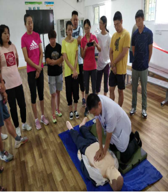 急救操作培训由第二附属医院急诊科主任邓崇弟医生进行示范讲解,在讲课过程中对相关的急救操作流程进行规范;