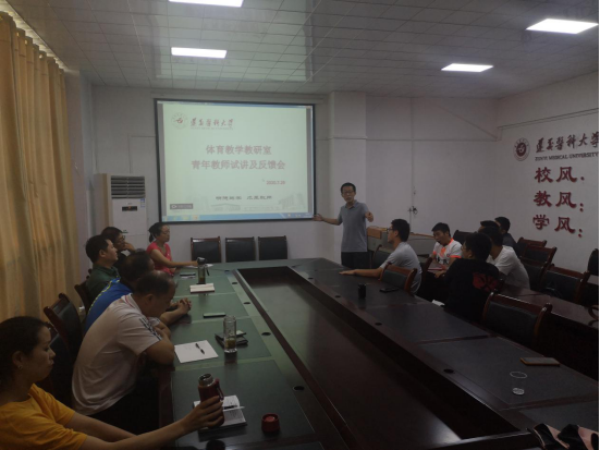 为提高青年教师的教学水平,体育教学教研室于7月29日上午开展了青年教师试讲及反馈。活动由尚菲老师主持,bevictor伟德官网教学督导组专家及全体公共体育任课教师参加;本次活动包括涂世利老师进行24式简化太极拳试教和万家川老师进行足球选项说课两项内容,活动结束后由bevictor伟德官网督导组专家对两位教师的试教和说课情况进行评分及点评,全体参与的教师也分别对两位老师的试教和说课情况提出了自己的意见和建议;最后,黄涛副经理对两位青年教师的试讲情况进行总结,要求两位试讲教师按照督导组专家的意见和其他教师的建议进行改进,并利用暑假努力提高自己的教学能力;此外,黄涛副经理也要求全体任课教师要严格按照体育教学原则和规律进行教学设计和实施,同时要充分考虑“以体育人”,并重视教学安全问题。