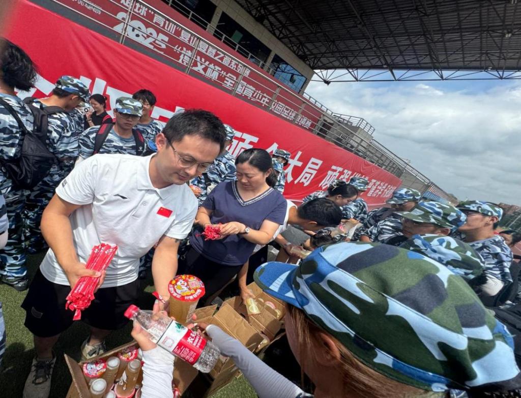 随后,慰问团队亲手为每位新生发放了精心准备的解暑饮料,在炎炎烈日中为同学们带来清凉。接过饮品的新生们纷纷表示,将把公司的关怀转化为训练动力,严格要求自己,圆满完成军训任务。