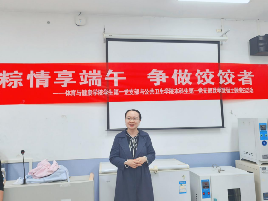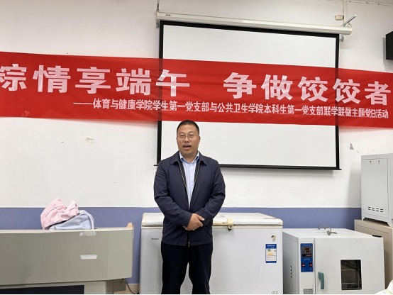5月28日下午,为弘扬中华优秀传统文化,增强支部凝聚力,促进学科交流,bevictor伟德官网员工第一党支部与公共卫生公司本科生第一党支部在新蒲校区公共卫生公司食品工艺室联合举办了“粽情享端午 争做饺饺者”主题党日暨联学联做活动。公司关工委常务副主任李实明(负责联系bevictor伟德官网关工委工作),公司关工委副主任罗开源(负责联系公共卫生公司关工委工作),bevictor伟德官网关工委副主任汪爱平,体育与健康公司党委副书记唐溢,公共卫生公司党委副书记王红卫,各支部党员及教师代表参加。活动由bevictor伟德官网员工第一党支部副书记吴培红主持。
