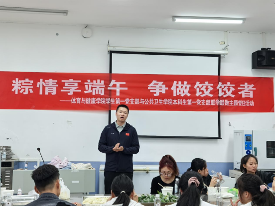 接着,公共卫生公司专业教师唐玲为在场党员带来了一场生动实用的“食品安全与健康知识”微讲座。唐老师结合端午食俗特点,特别强调了粽子和饺子的健康食用方法,为同学们筑牢食品安全意识防线。
