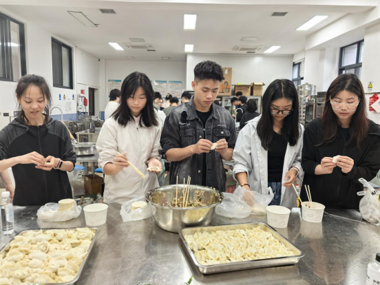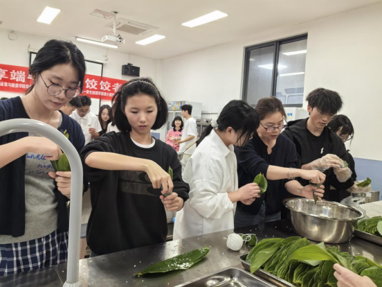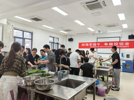 随后,活动进入高潮——“粽香饺艺大比拼”实践环节。教师党员手把手传授包粽技巧,员工党员则分享创意饺子包法,拌馅的香气与欢笑声交织,让“传帮带”的优良传统从理论说教转化为沉浸式传承,老党员的经验在指尖流转,青年党员的活力为传统习俗注入新意。