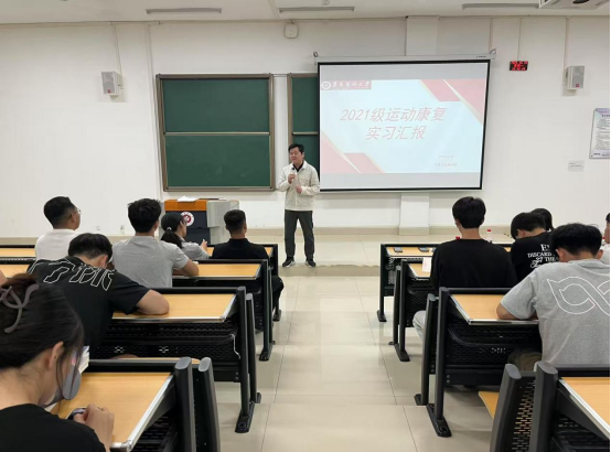 2025年4月28日下午18:30,bevictor伟德官网在35阶梯教室隆重举行2021级运动康复专业实习汇报会。公司副经理黄涛参加并作总结点评,运动康复教研室主任张婕以及相关教师和2021级、2022级运动康复专业全体员工共同参会。