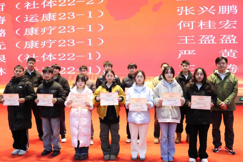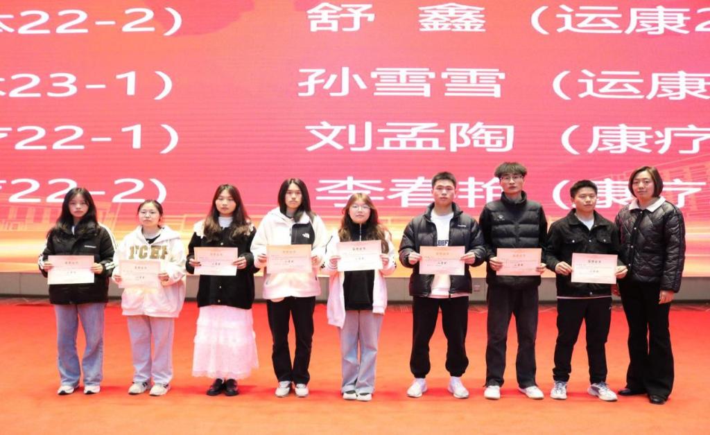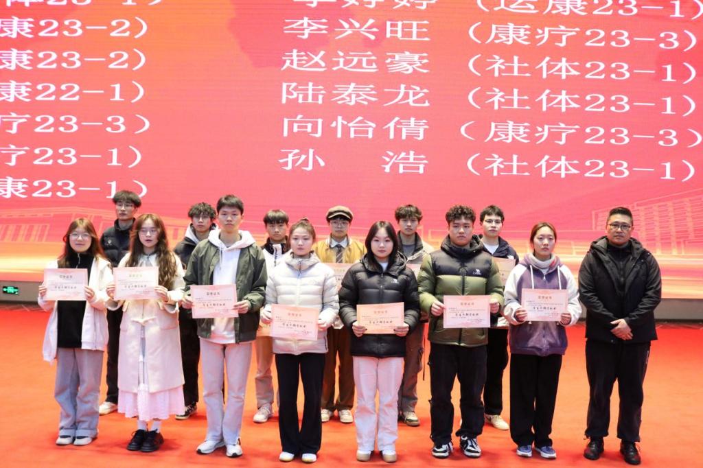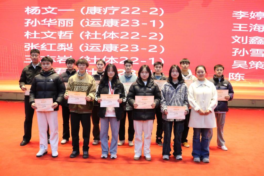 张金凤(社体23-1)、李婷婷 (运康23-1)、郭嘉欣 (运康23-2)、李兴旺 (康疗23-3)、白智壮 (运康23-2)、赵远豪 (社体23-1)、夏德强 (运康22-1)、陆泰龙 (社体23-1)、刘孟陶 (康疗23-3)、向怡倩(康疗23-3)、李 焕 (康疗23-1)、孙 浩 (社体23-1)、郑 滔 (运康23-1)