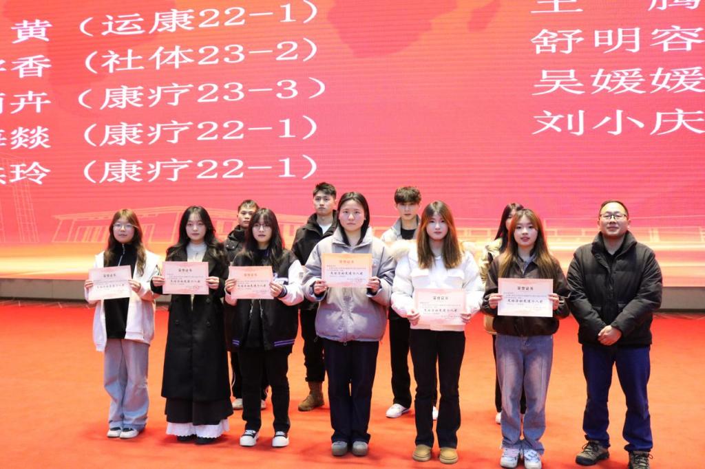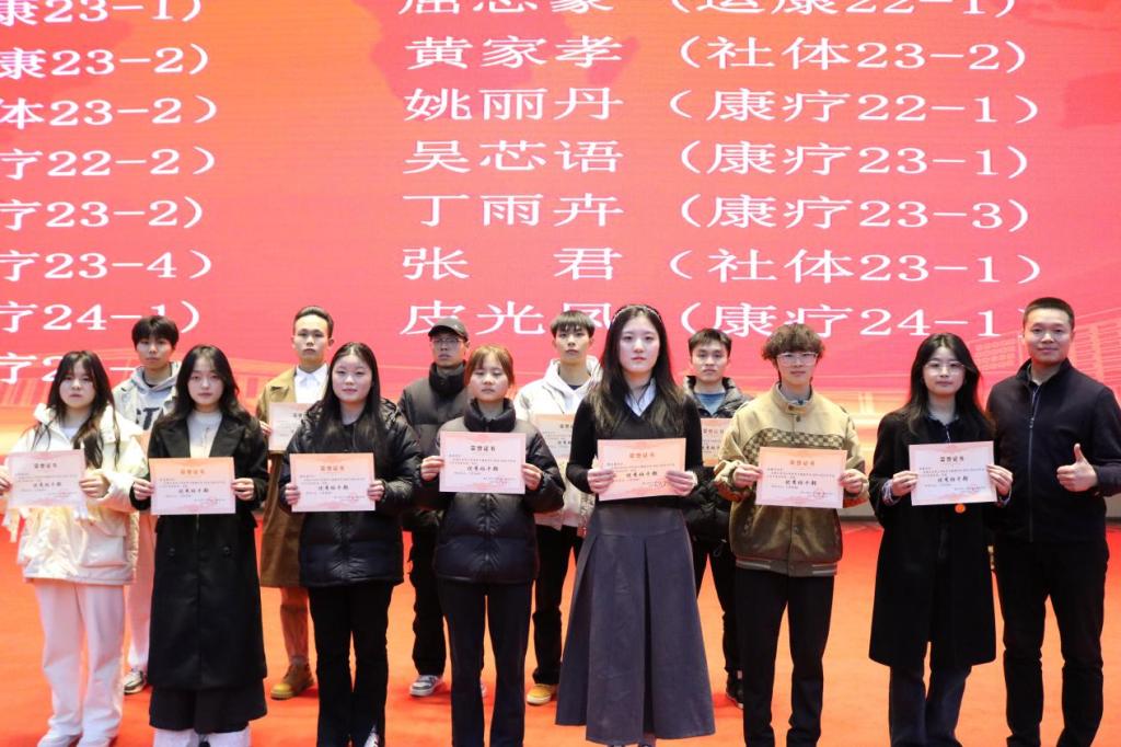 吴策单 (运康23-1)、屈志豪 (运康22-1)、张红梨 (运康23-2)、黄家孝 (社体23-2)、田森华(社体23-2)、姚丽丹(康疗22-1)、刘津羽(康疗22-2)、吴芯语 (康疗23-1)、彭柯文 (康疗23-2)、丁雨卉 (康疗23-3)、宋 婷 (康疗23-2)、张 君(社体23-1)游俊莎(康疗24-1)、皮光凤(康疗24-1)、罗云云(康疗24-1)